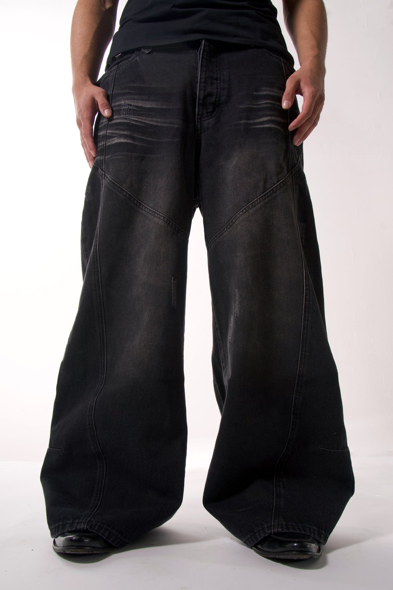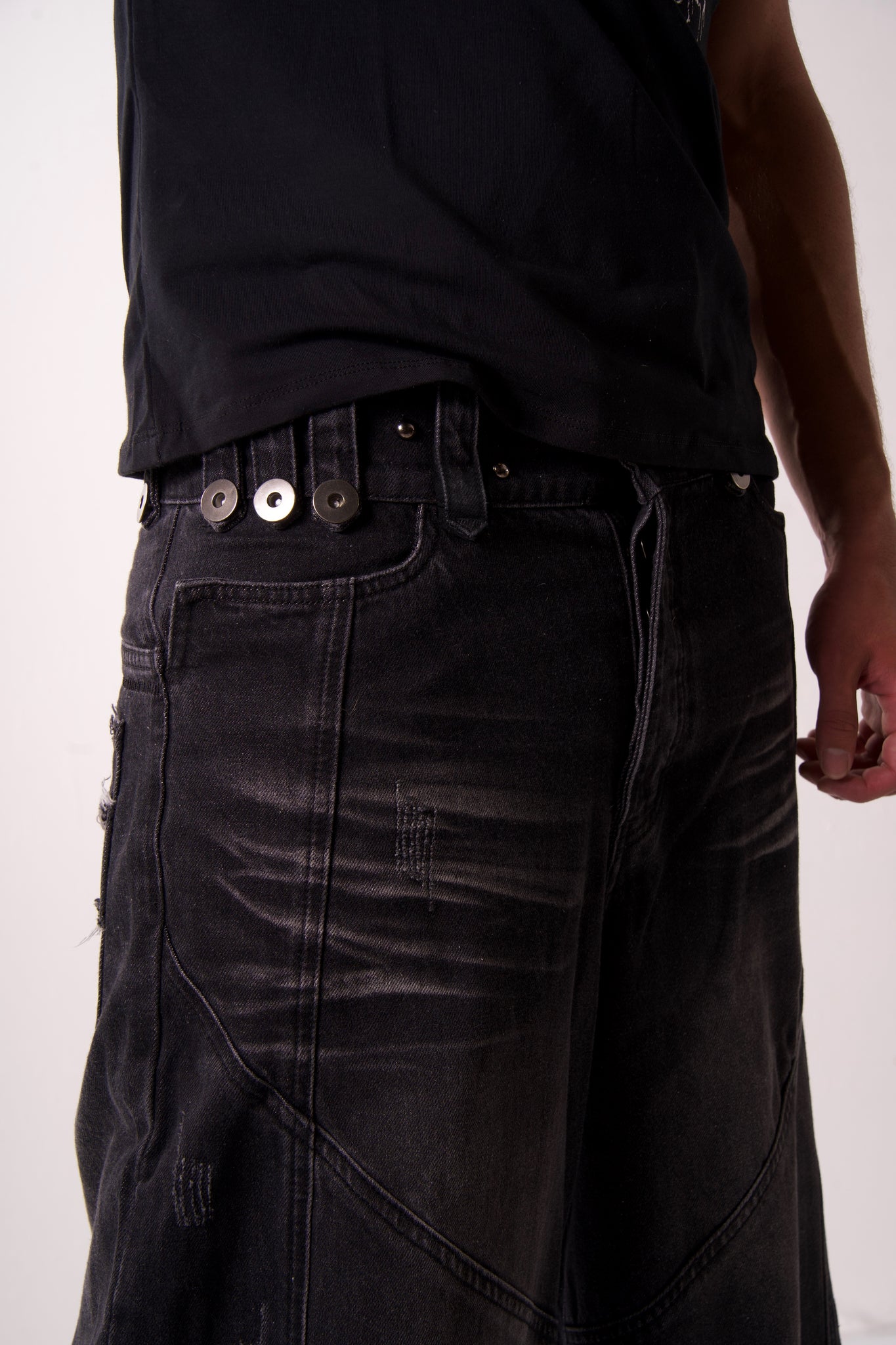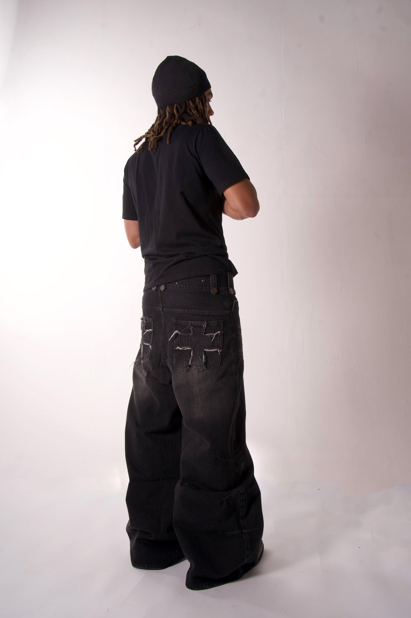 Cruces desgastadas en los bolsillos traseros.